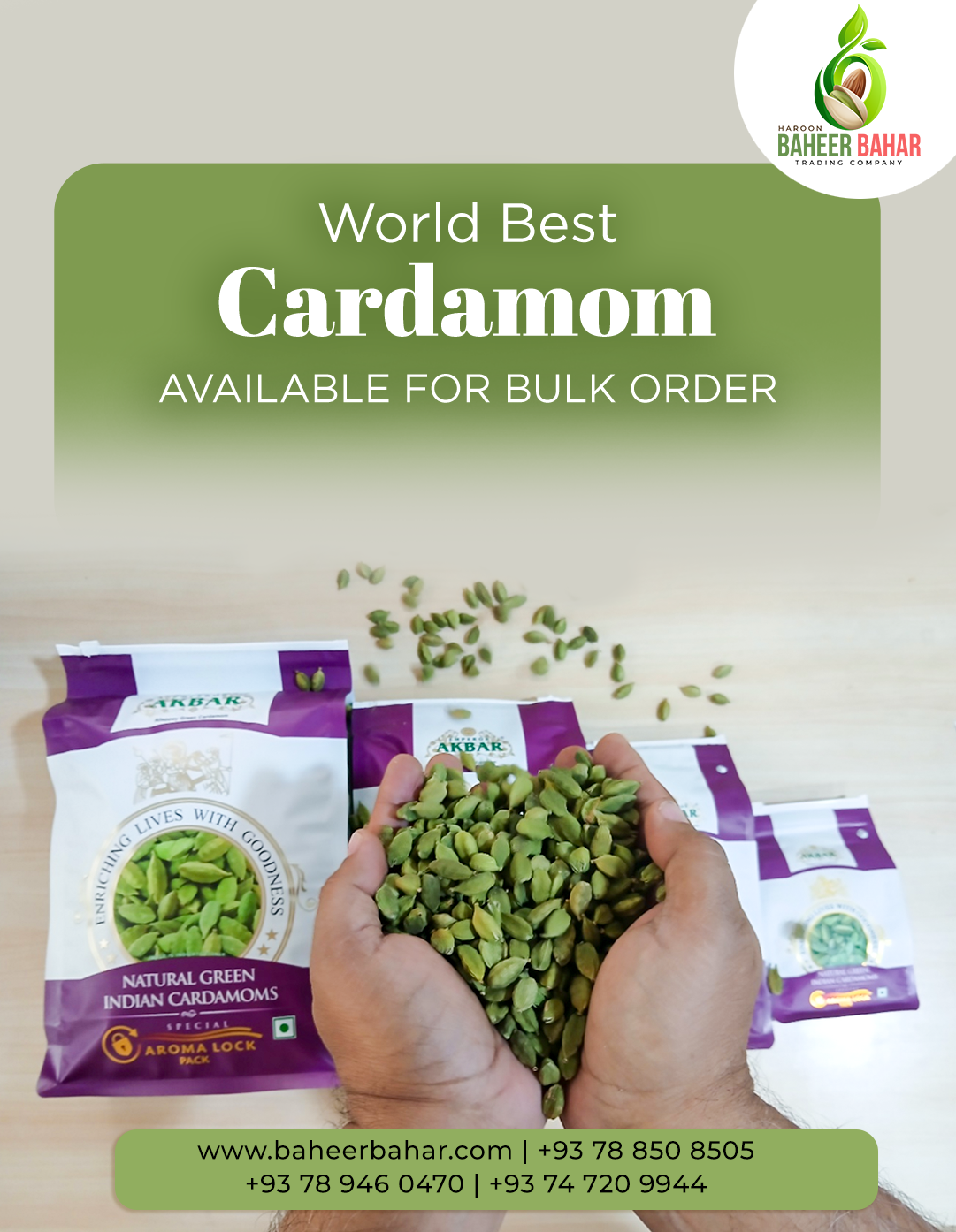 At Haroon Baheer Bahar, we proudly bring you Akbar Green Cardamom, a premium variety renowned worldwide for its exquisite aroma, vibrant green …
